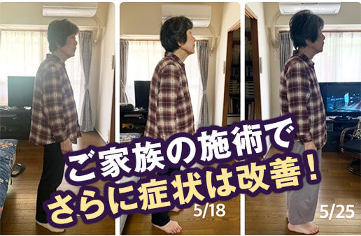 背中も大きく湾曲し自分の体が情けなく思っていましたが、先生に施術をしてもらってからは生きる希望がグーンとわいてきました。気持ちまで前向きになって手付かずだったことにも取り組み始められそうです!